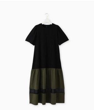 半袖デザインが程よく抜け感を演出し、異素材のドッキングが洗練された雰囲気を醸し出します。
